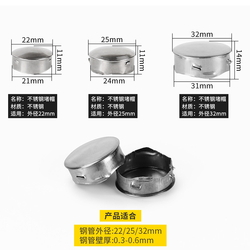Stainless steel tube jam cap plug cord seal cap block block of 22 25mm