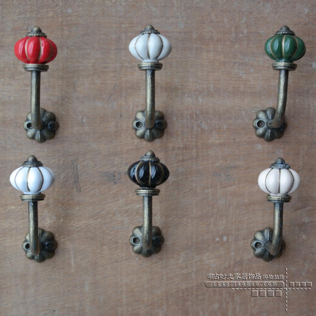 European style pastoral retro ceramic hook bronze decorative art adhesive hook clothing store after personality creative coat hook