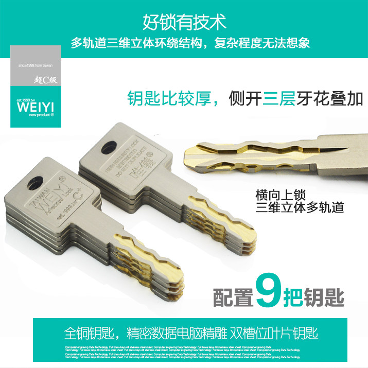 Weiyi WY new Super C- class lock lock cylinder 360 degrees idling 304 stainless steel anti-theft door lock T800-S