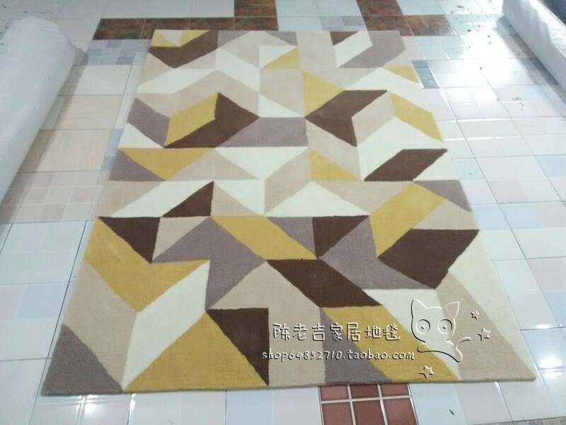 Eurostyle Solid Yellow Plaid Carpets Living-room Tea Table Sofa Bedroom Bedside Handmade acrylic Acrylic Carpet Full of Custom