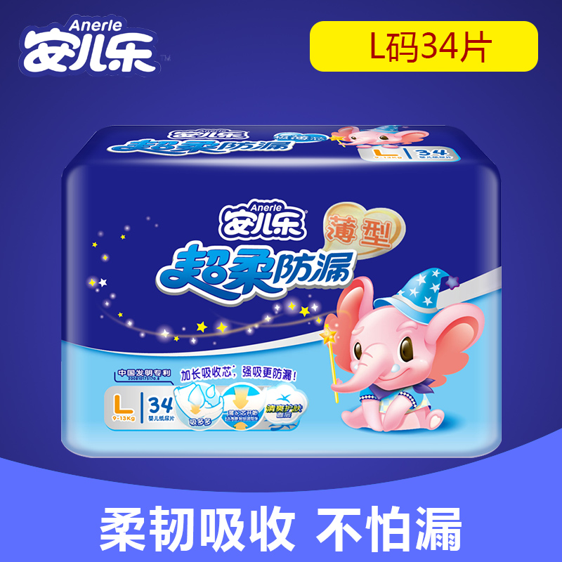 Angerle Paper Diaper L Code 34 ultra soft and leakproof baby Anle Leupee does not wet the official flagship official website