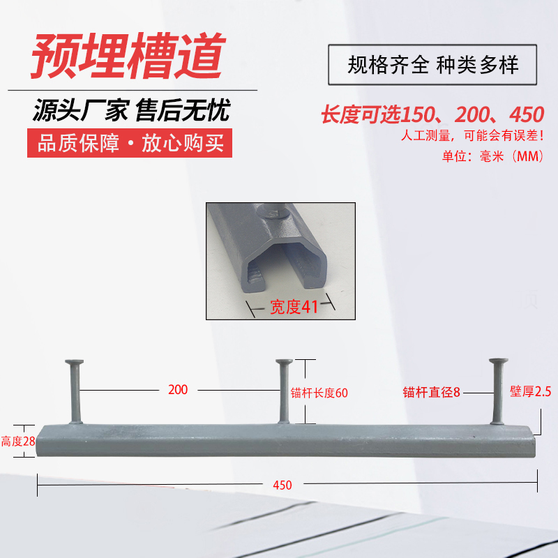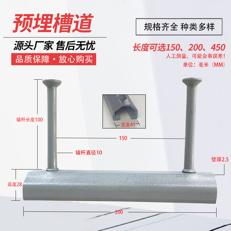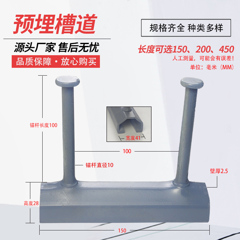 Railway Bridge trough type embedded parts V-type hot-rolled Channel 41 28 450 long penetration zinc anticorrosion source factory