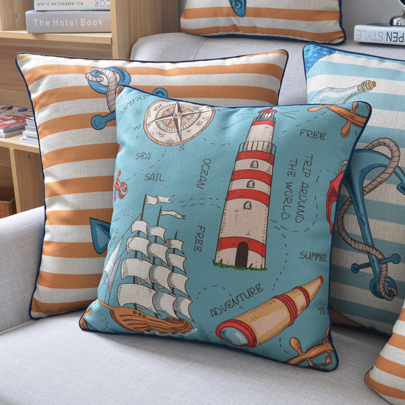 Mediterranean ocean style living room pillow cotton linen waist cushion set sailing sofa cushion home stay decoration pillow office