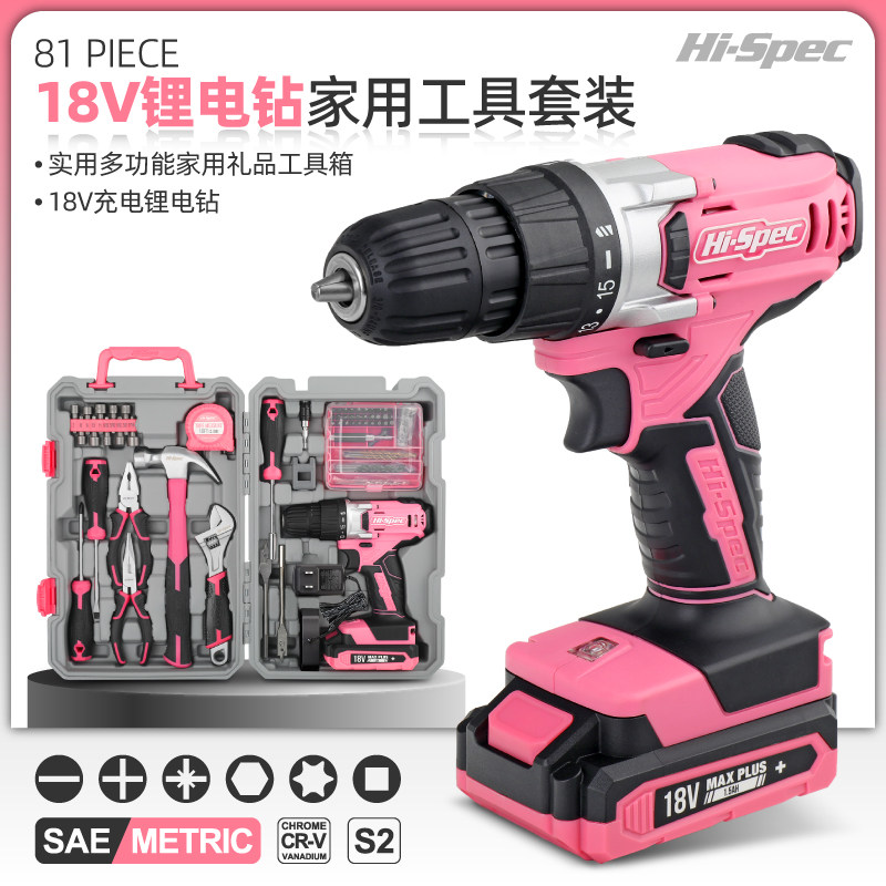 39 pieces pink 40 pieces pink (with 8-inch live wrench) 42 pieces pink 56 pieces pink 67 pieces pink 71 pieces pink 135 pieces pink (3 6V electric screw driver) 81 pieces of powder