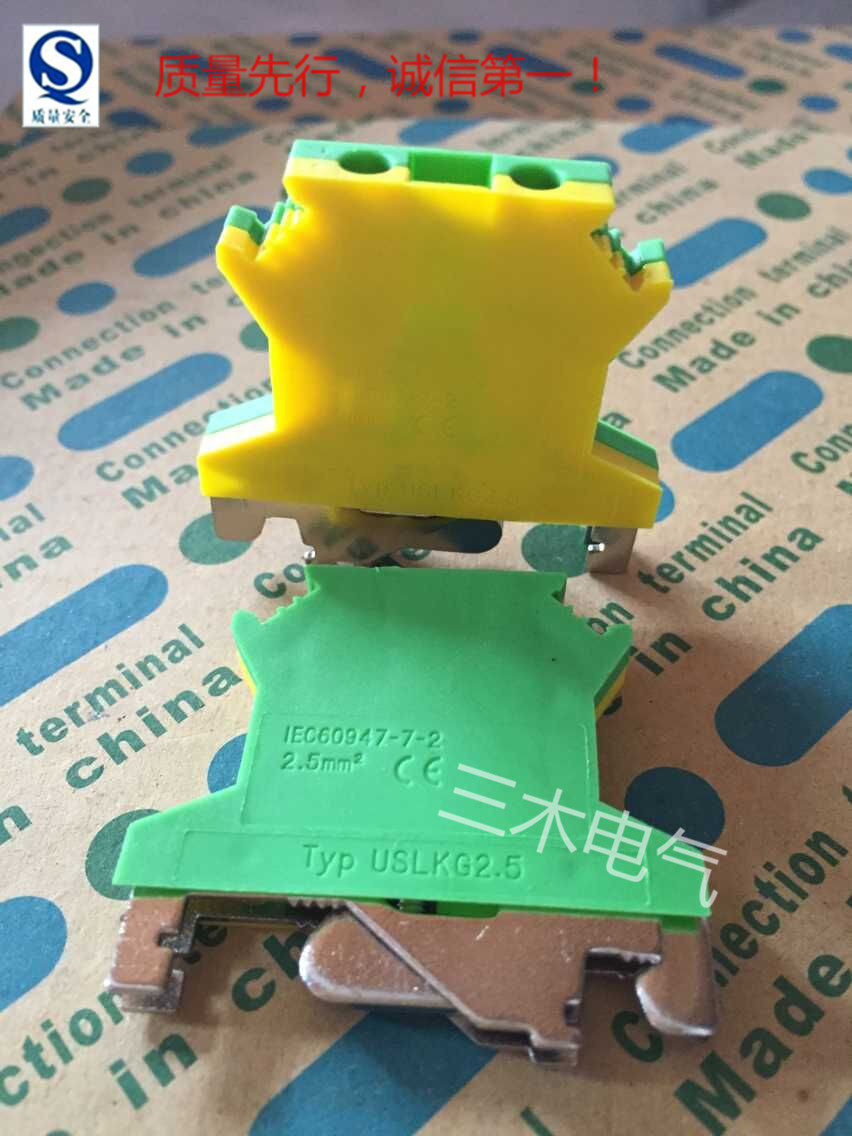 Factory direct USLKG-2 5 UK-2 5 square ground terminal yellow-green combination rail type terminal block