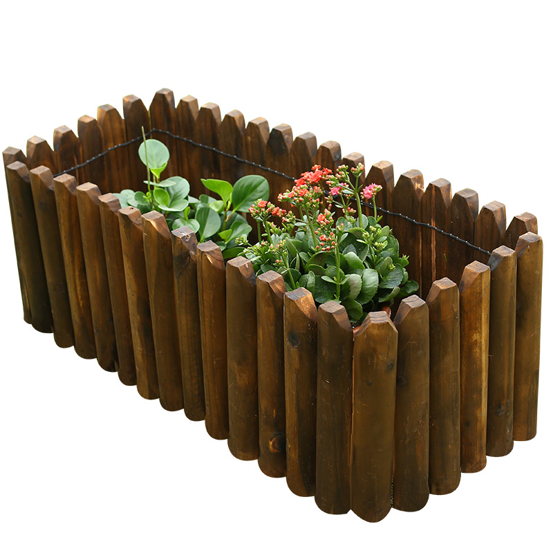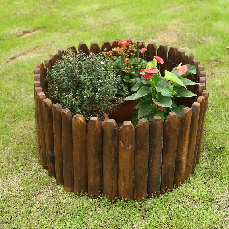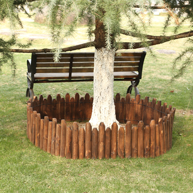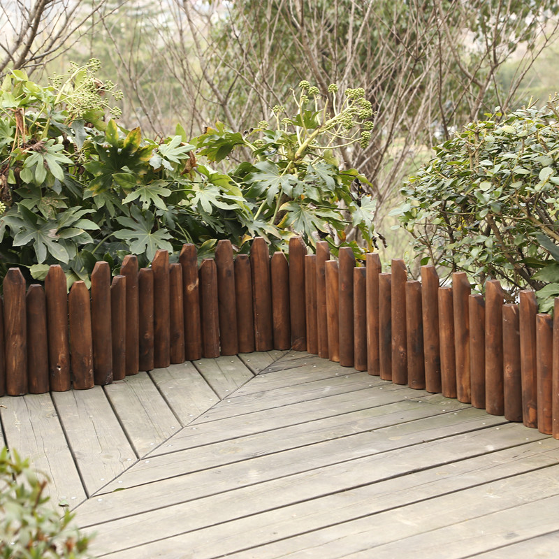 Carbonized wooden pile fence outdoor corrosion fence semi-circular flower fork line garden fence cut wooden fence