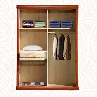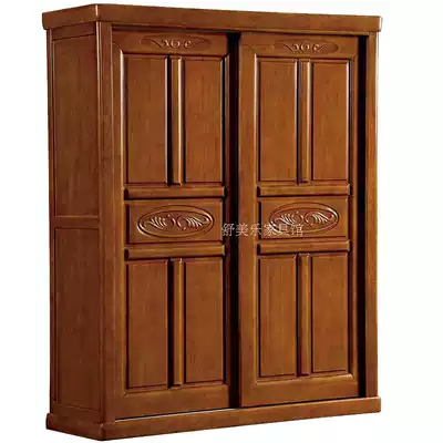 Solid wood rubber wood two-door push-pull large-capacity assembly wardrobe wardrobe storage cabinet Chinese carved atmosphere bedroom