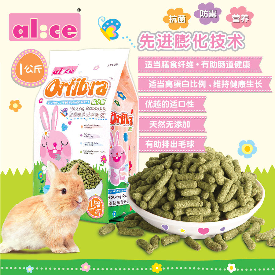 Rabbit nest head shop Alice High quality puffed young rabbit food AE108 Rabbit grain feed 1kg nationwide