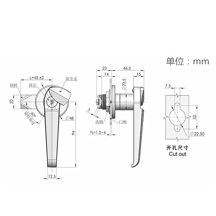 Manufacturer direct sales plane handling lock waterproof turning tongue lock fire cabinet lock Distribution box cabinet door lock MS 317