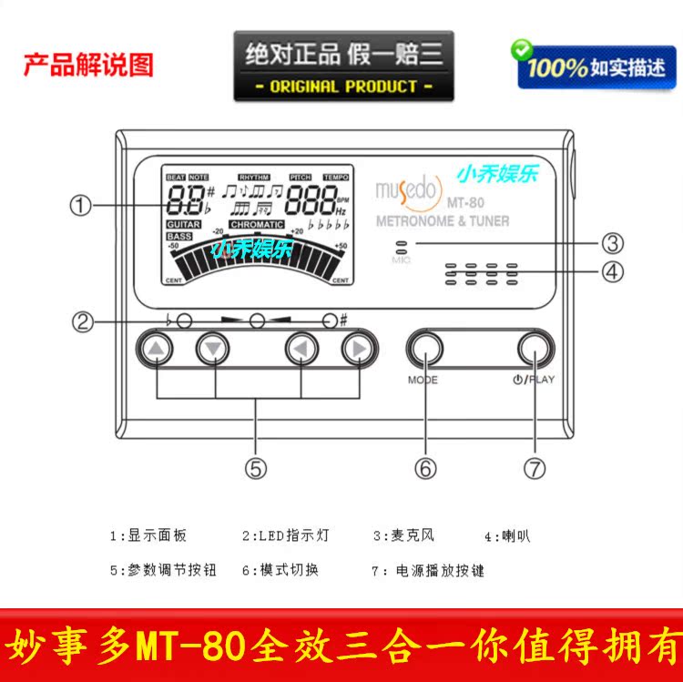Little Angel Guitar Tuner Electronic Metronome Guitar Tuner 3-in-1 Good Helper MT-80