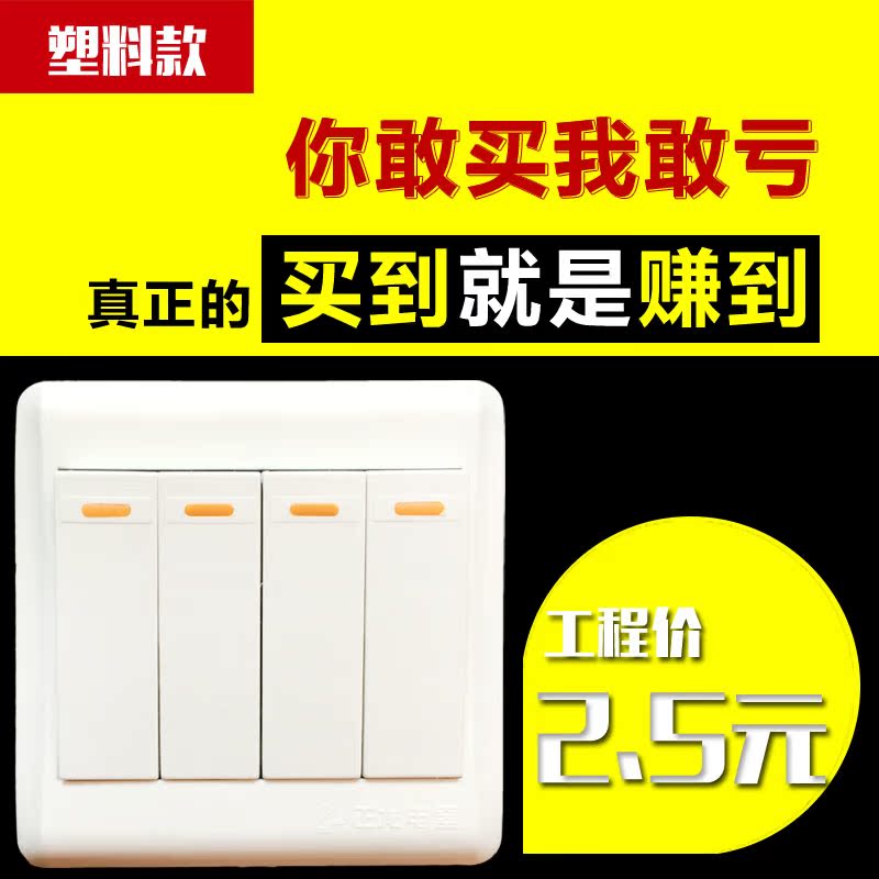 Zhenglong works four-opening single control switch socket panel four-link switch 4 open plastic version manufacturer direct sales