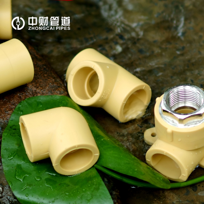 Zhongcai PPR hot water butler decoration curry color water supply pipe fittings series equal diameter tee hot melt tee