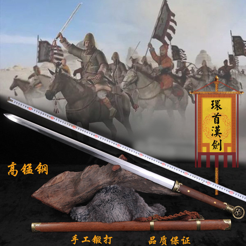 Longquan City Full Handcrafted Forging And Beating of the Town Residence Sword High Manganese Steel Integrated Tang Sword Han Sword Long Sword Ring First Knife Sword Unopened Blade