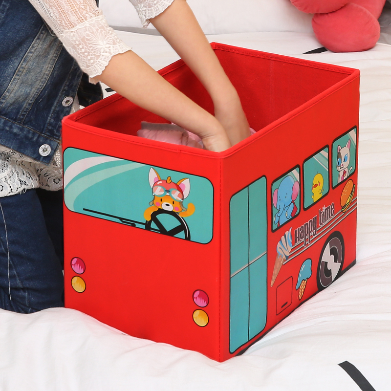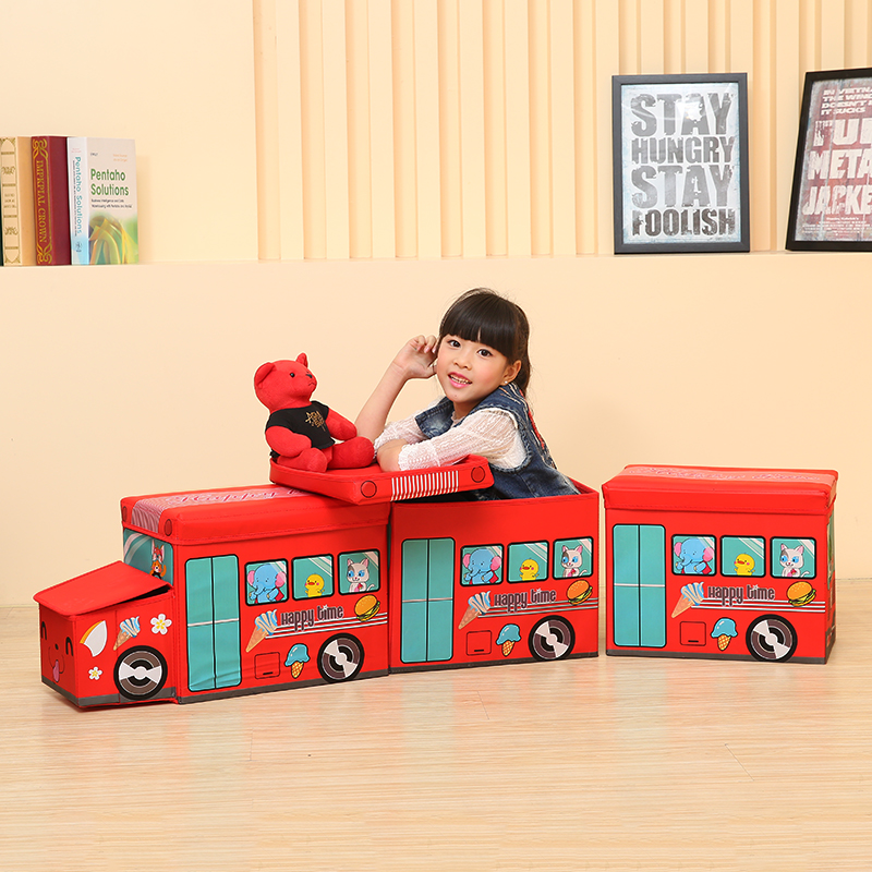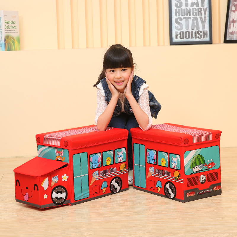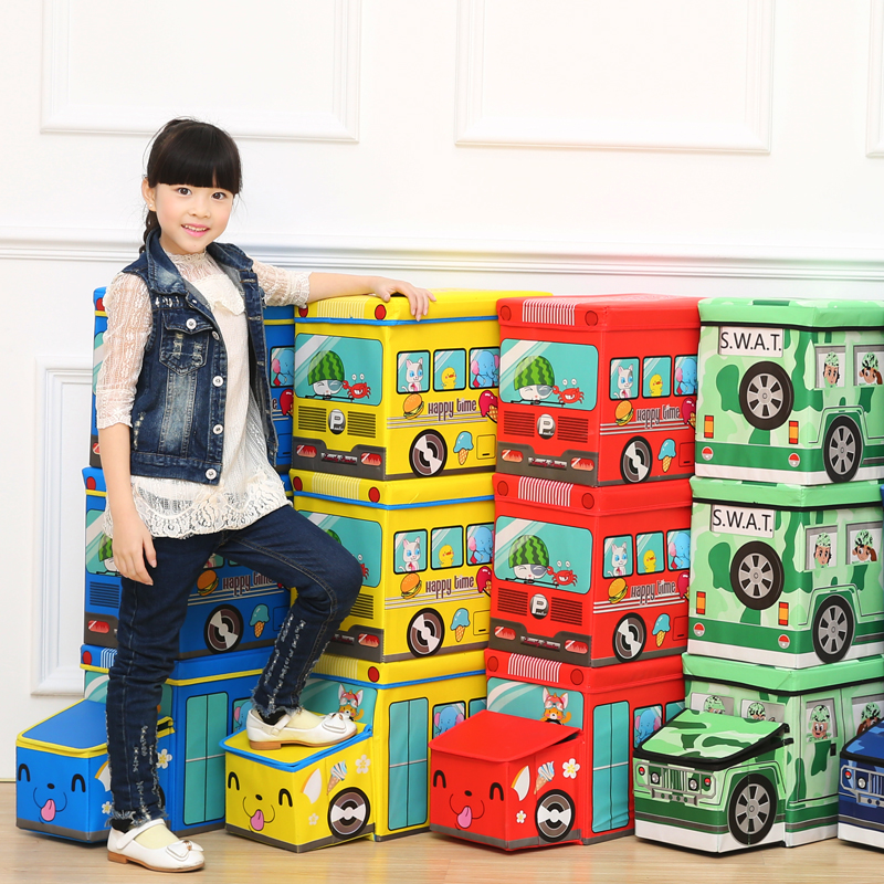 Sitting person cartoon car shape Children's toy storage box Storage stool storage box Folding book clothing storage