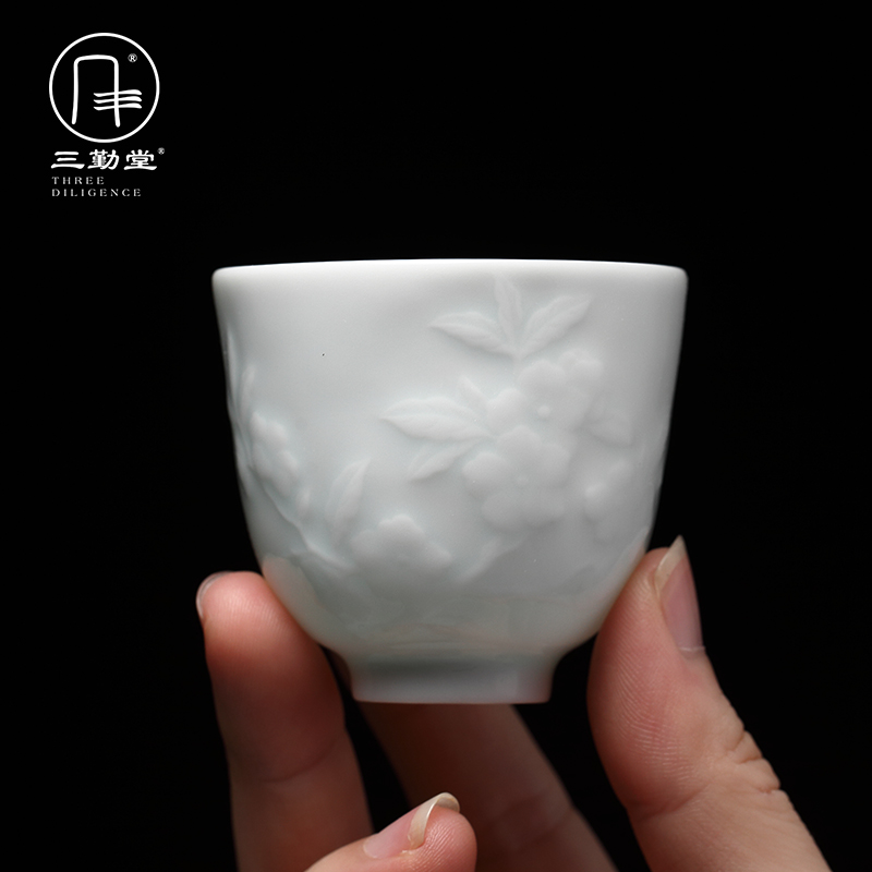 Sanqintang tea cup small Cup ceramic Jingdezhen kung fu tea set shadow Green carving individual cup Master Cup Single Cup