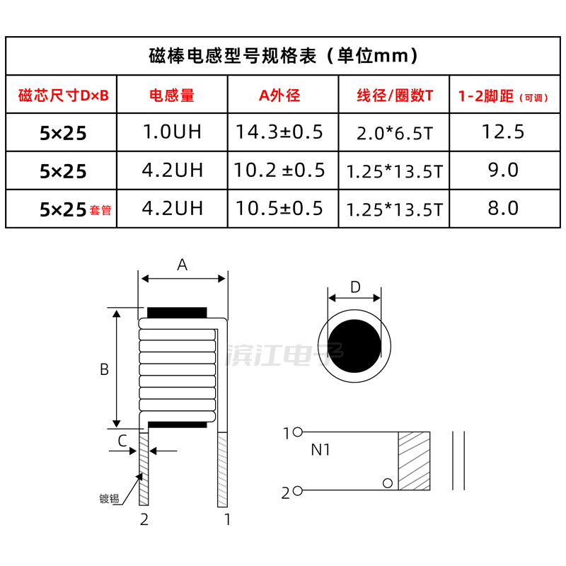 5*25 13 5 laps 1 25 wire diameter 4 2UH R rod straight plug-in power filter rod type plugin magnetic bar inductance