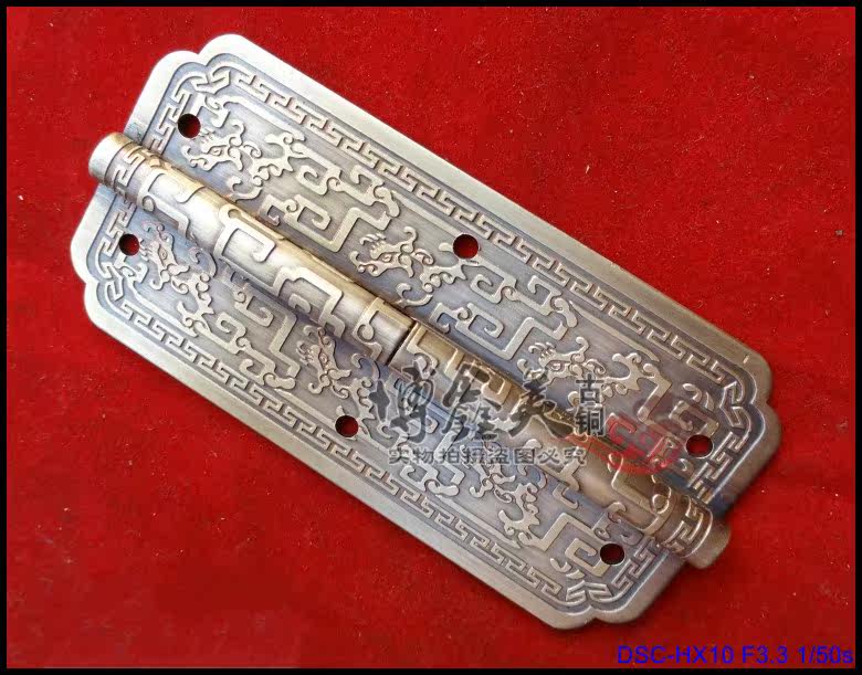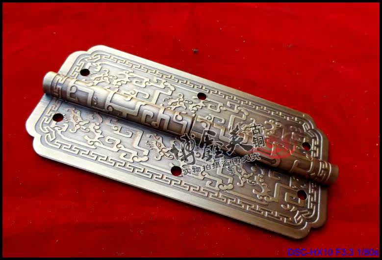 Pure copper hinges Chinese antique hinge mahogany furniture pure copper accessories bookcase cabinet door copper hinges Bo gulong pattern