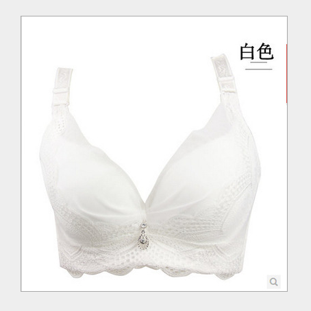 Amoi thin section solid color less ladies sexy size chest gathered adjustable underwear solid color white ABCD cup underwear