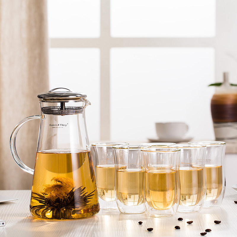 Telet anti-explosion glass-cup water tool suit Creative cold kettle suit Flower tea with water glass suit