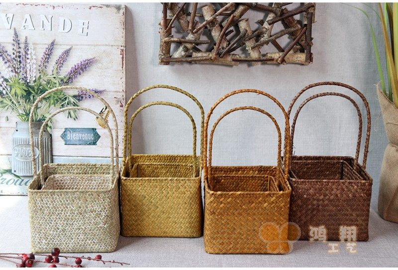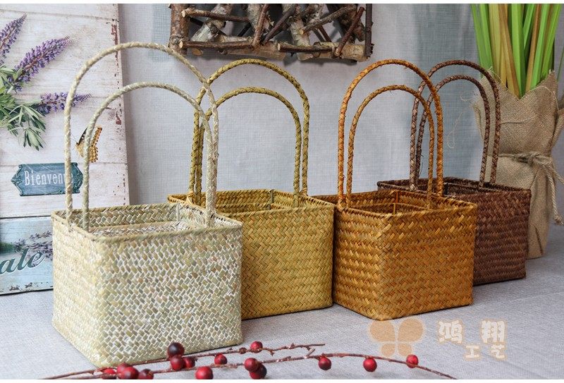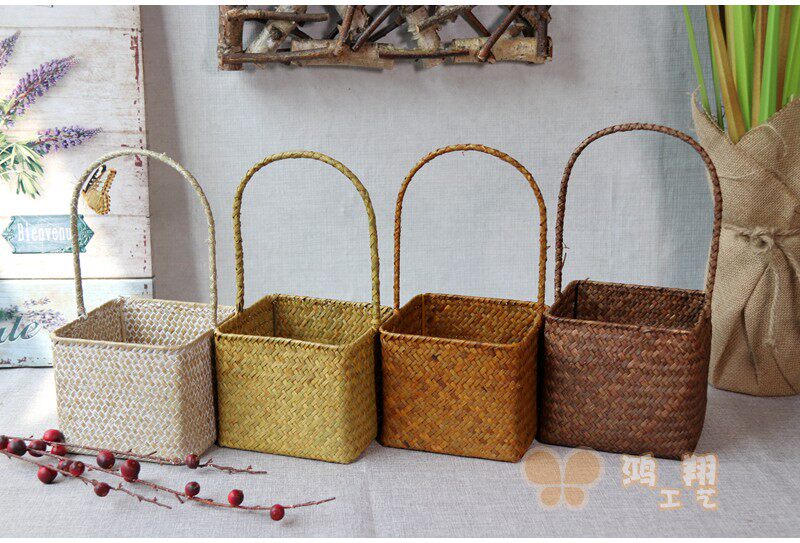 Field Garden Handmade Creative Sea Grass Choreography Hand Basket Flower Basket Decorative Basket Red Wine Pendulum basket Gift Containing Model Basket