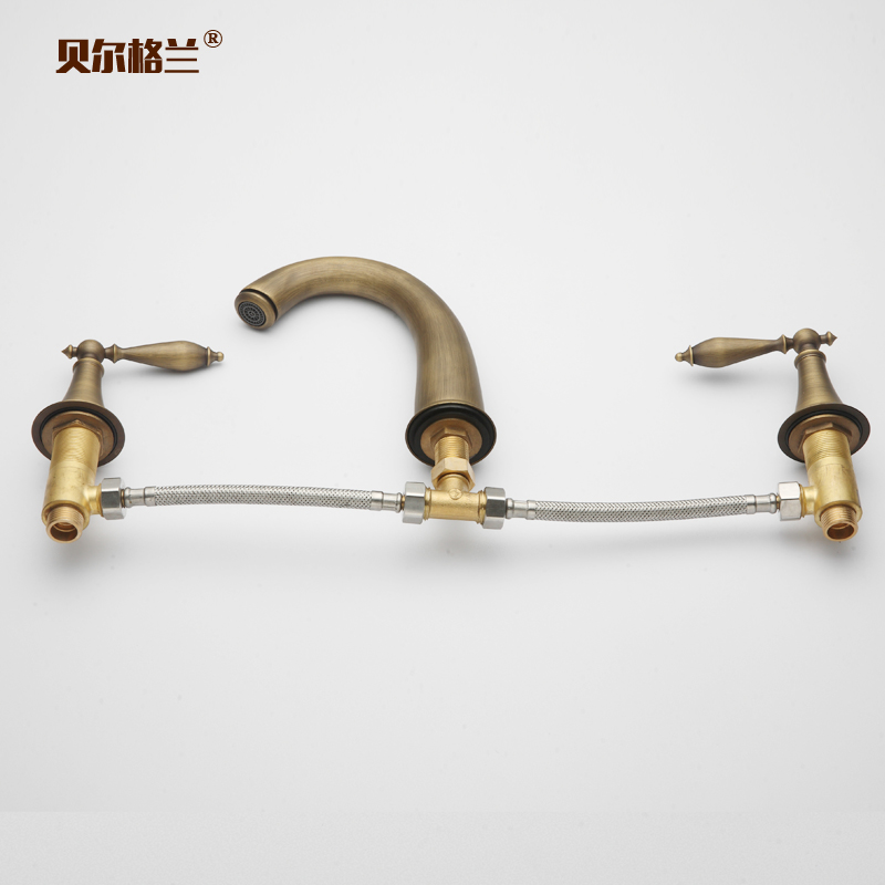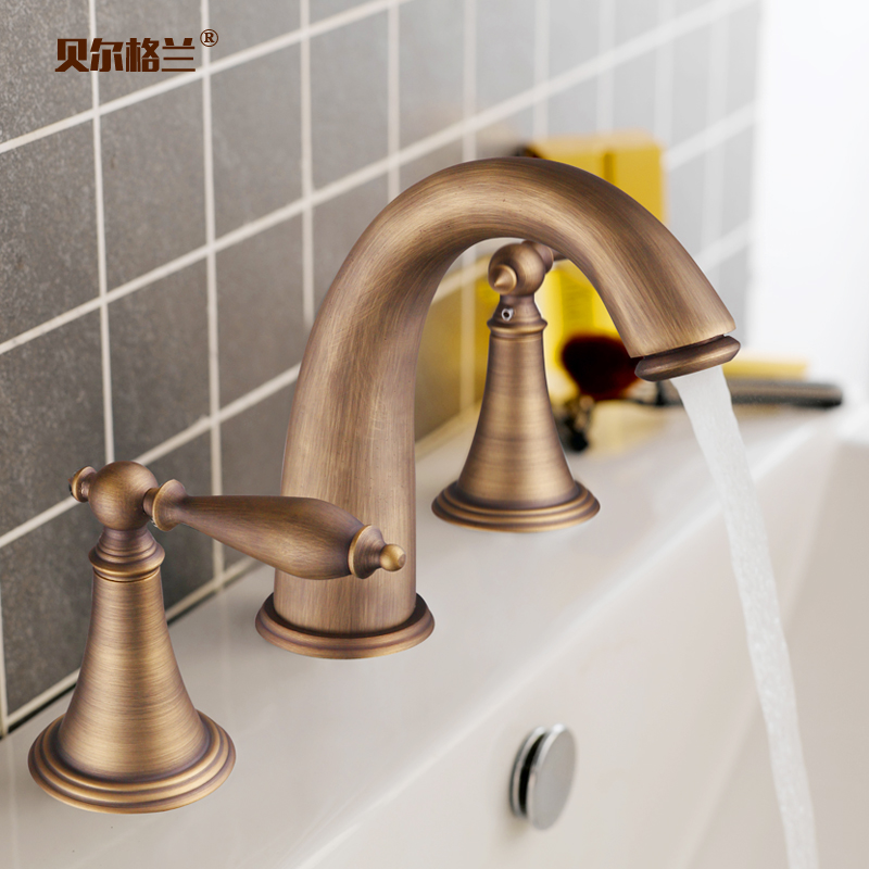Imitation ancient tap full copper hot and cold water surface basin Two-type tap Au style double handle triple hole face basin tap