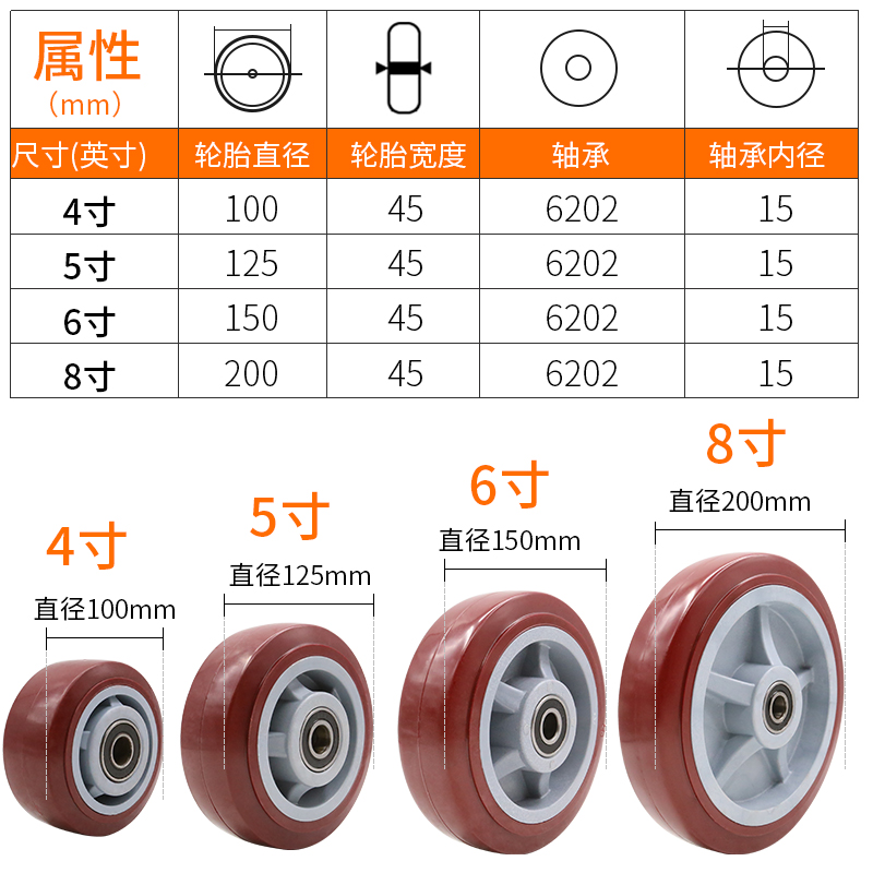 6-inch polyurethane single-wheel eagle rack wheel mute castors flat wheel pushcart wheels