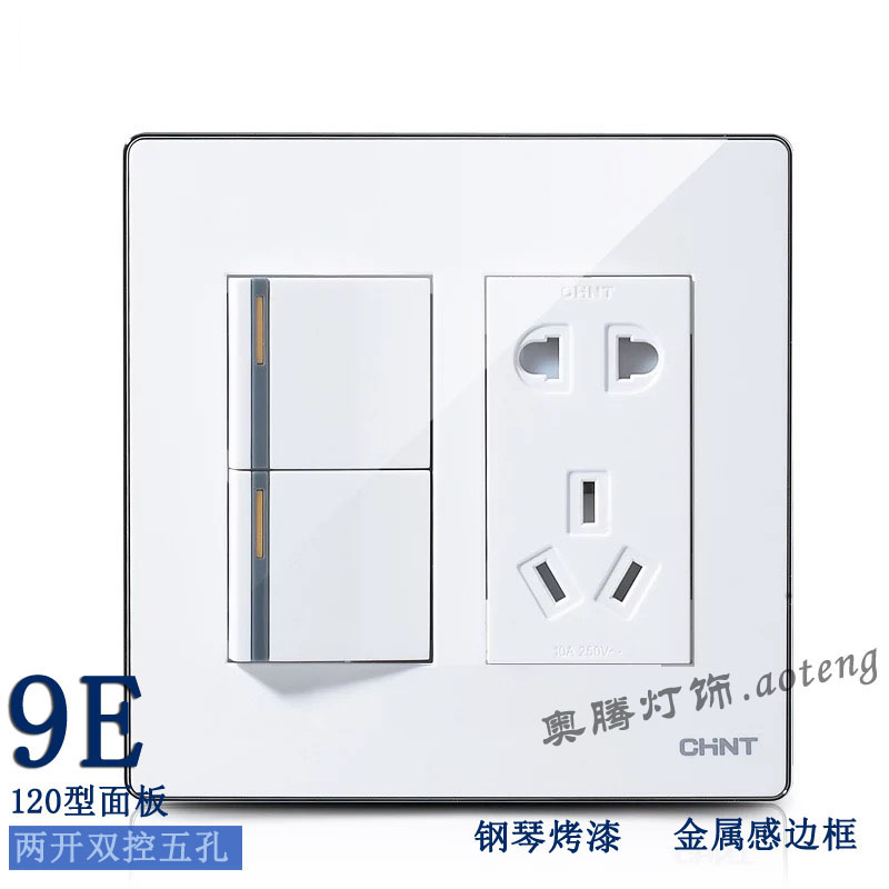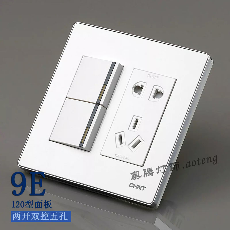 Chint switch socket 120 type NEW9E series two open double control five hole socket