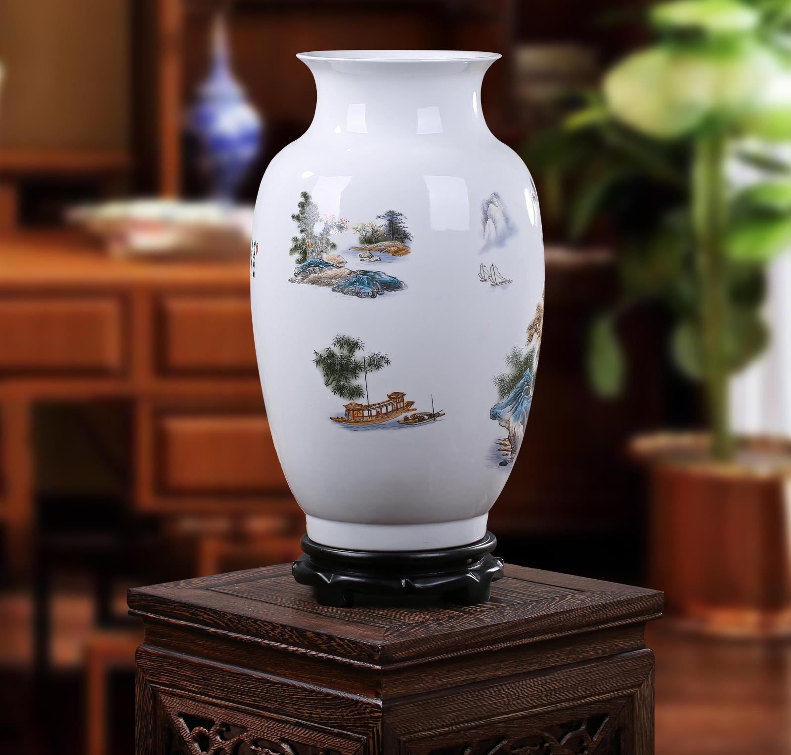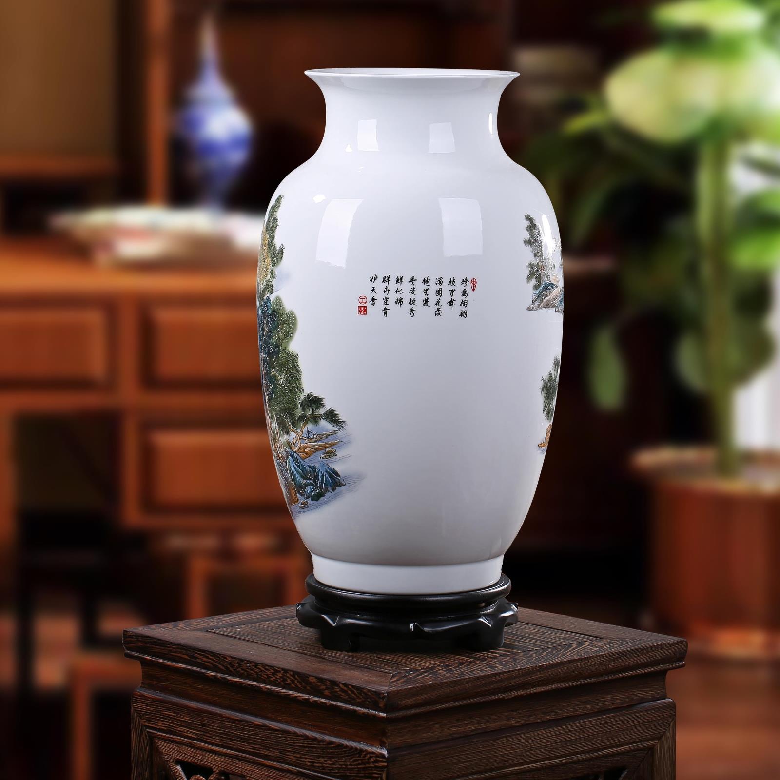 Jingdezhen Ceramic Ornament Chinese TV Cabinet Vase Classical Decorative Handicraft Landscape Rich Bamboo Vase