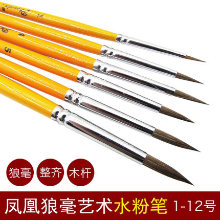Phoenix painting material Phoenix brand high-grade wolf brush gouache watercolor round peak bright yellow short rod brush single 8805