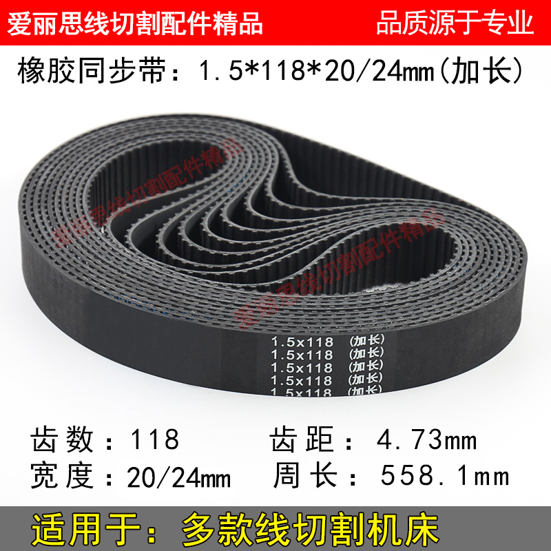 Wire cutting timing belt 1 5*118*24 Square tooth beef tendon rubber synchronous belt 118 extended belt assembly