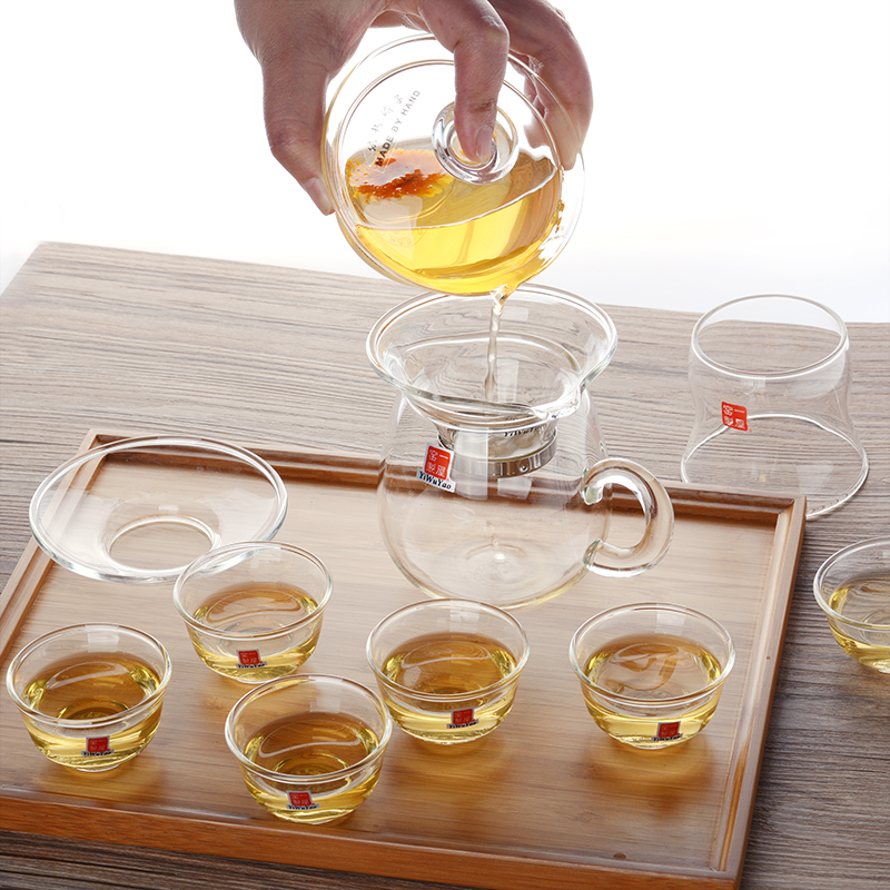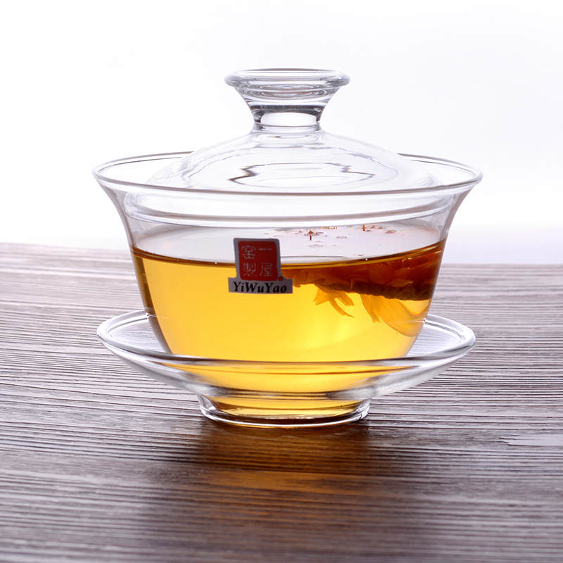 One House Kilns Kongfu Tea Furniture Set Three-only bowls Set of three Cannon Bench Thickened Heat Resistant Glass Tea Cup Lid Bowl set