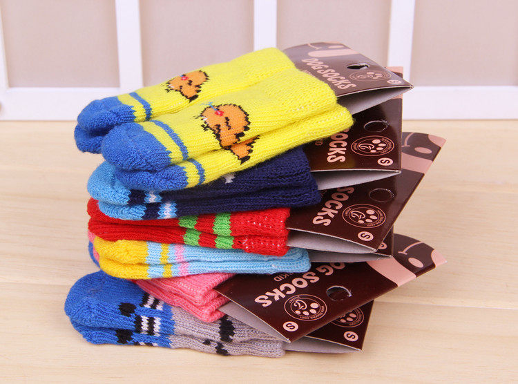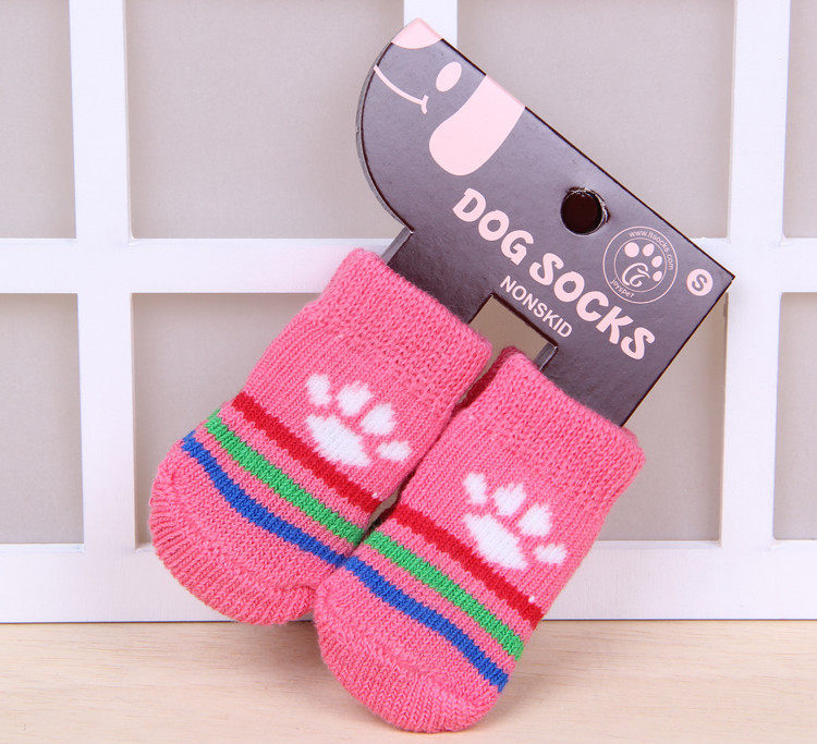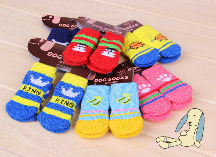 Pet cotton socks Teddy dog socks Small dog non-slip rubber sole Dirt-resistant floor socks 4 packs Anti-scratch socks