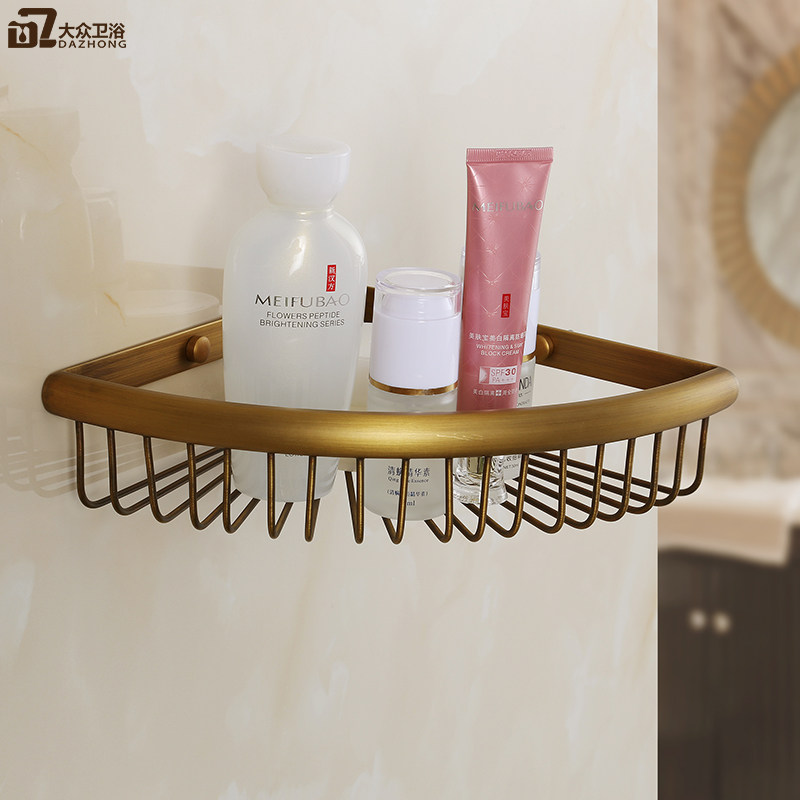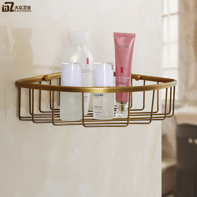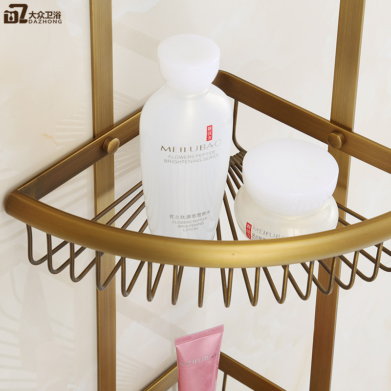 European-style antique racks Double-layer triangular mesh baskets all-copper storage baskets Dressing room storage baskets wall-mounted double-layered baskets