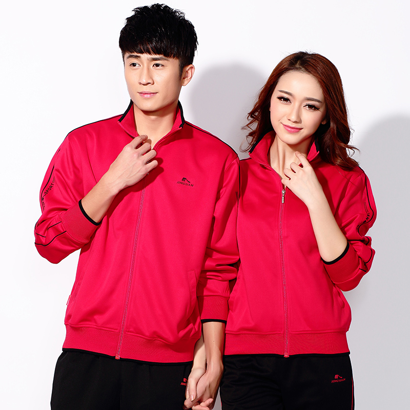 Jinguan South Korea silk morning exercise clothes group clothes red sportswear suit spring and autumn women's men's large size middle-aged and elderly sportswear