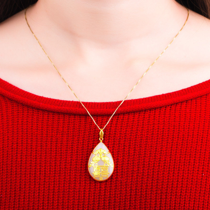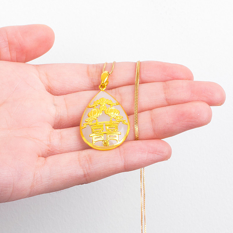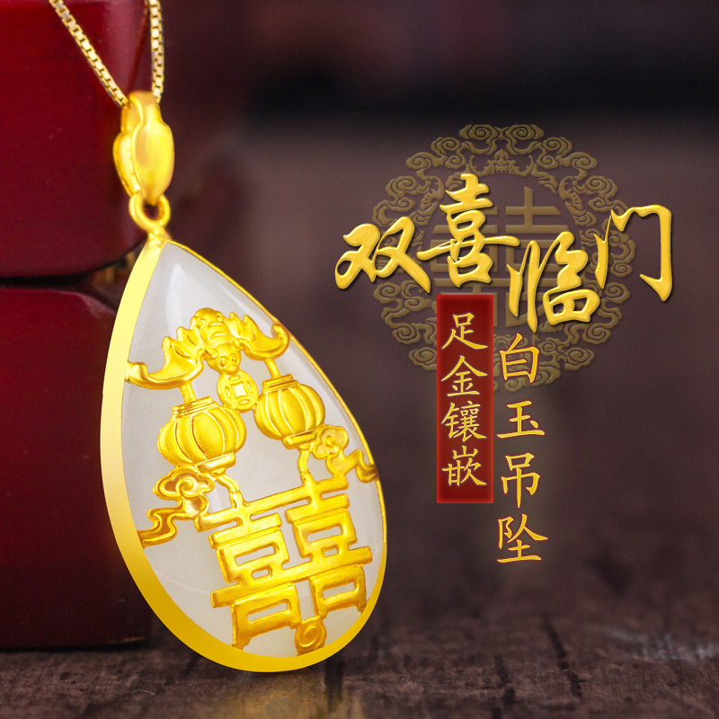 Shengtong Jewelry Gold Inlaid Jade Pendant and Tian Bai Shuangxi jade pendant fu to jade item pendant with certificate