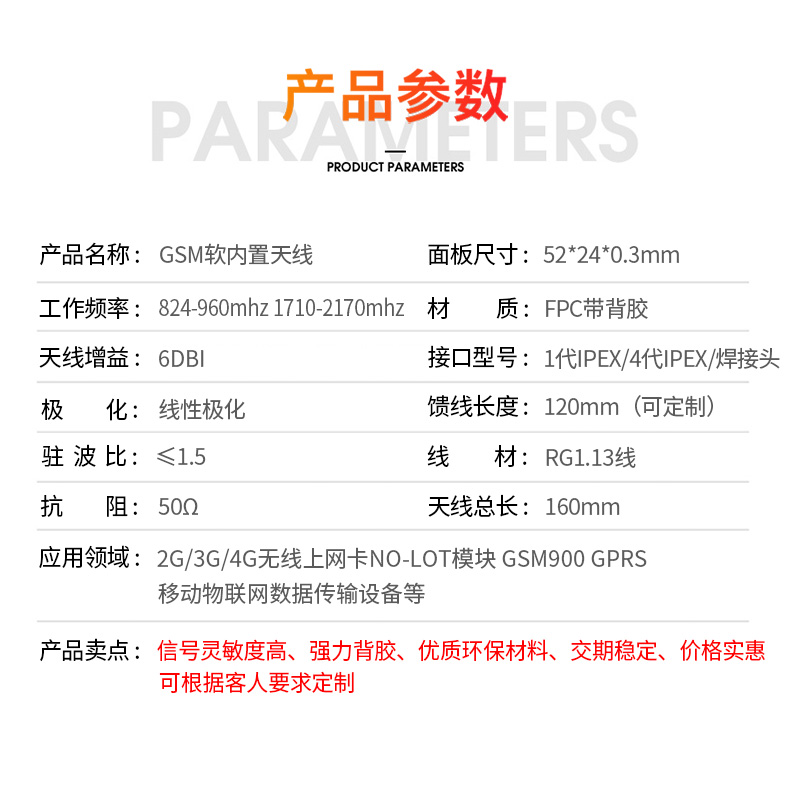 high gain lte 4g 3g 2g gsm gprs 800 850mhz nb-iot built-in flexible FPC antenna