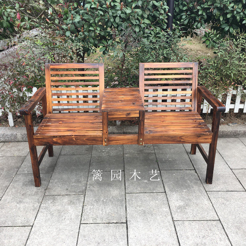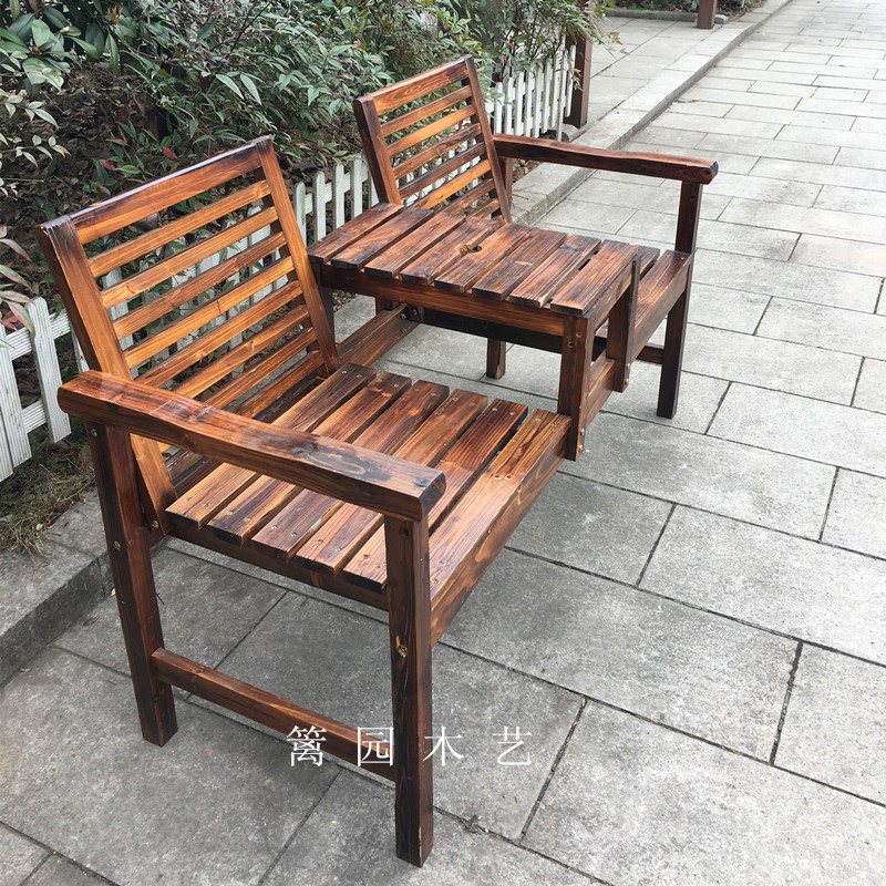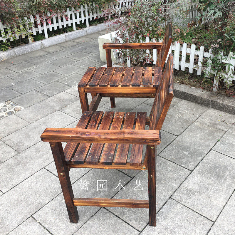 Outdoor solid wood carbonization anti-corrosion back chair courtyard balcony leisure burning fir table and chair Chinese furniture double coffee table