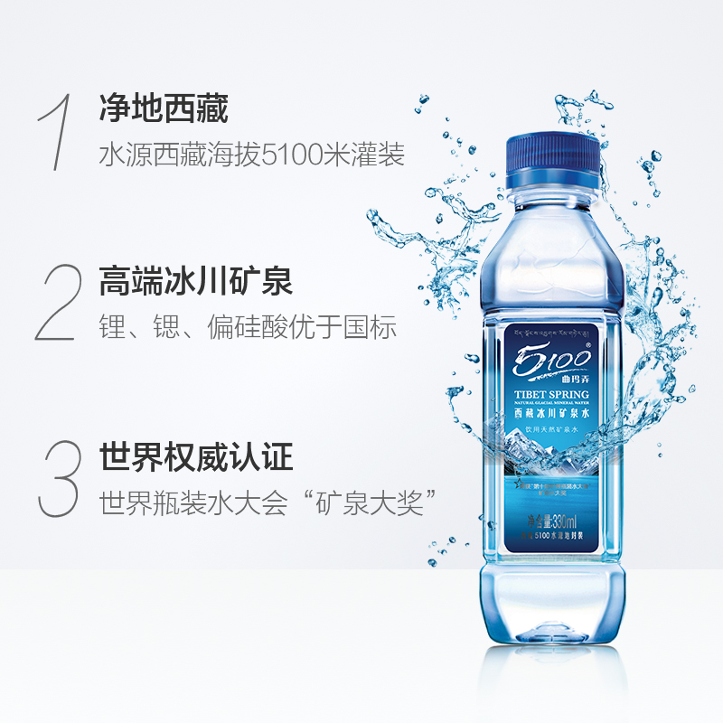 5100 Tibet Glacier mineral water Drinking natural mineral water 330ml*24 bottles full box of small bottles of weak alkaline water