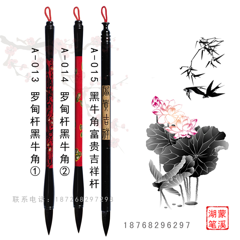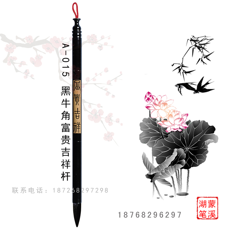 Luodian rod black horn ① Luodian rod black horn ② black horn rich auspicious rod Mahogany Kangping Baishun Mahogany martial pen Mahogany pen Peach wood baby pen