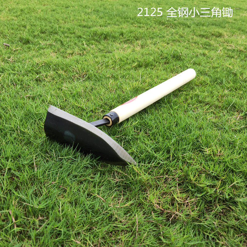 Agricultural wood handle large triangular hoe head ditching triangular wood tip hoe crops weeding loose soil multifunction light opening sickle