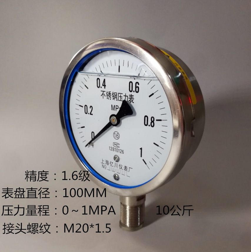 Manufacturer Direct Sale Shanghai 100 million Sichuan full stainless steel resistant pressure meter YNBF100 0 ~ 1MPA