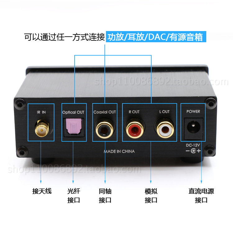 Bluetooth 5 0 audio receiver fiber optic coaxial analog output high-fidelity distortion-free transmission connected to power amplifier amp DAC