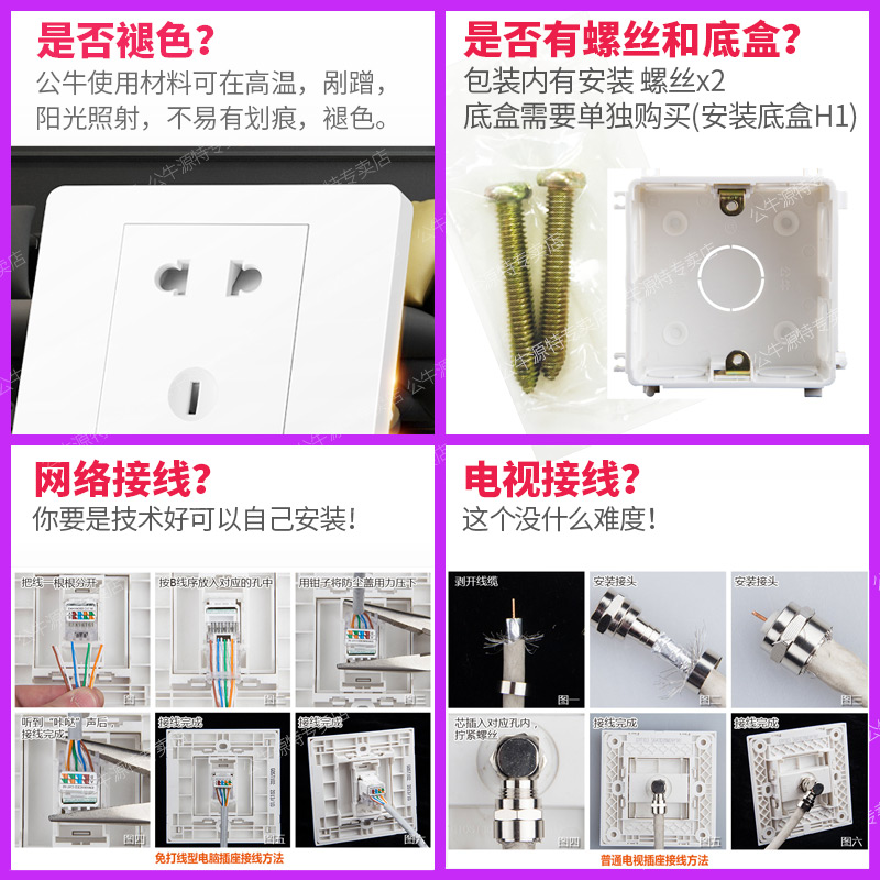 (Super Class 5) Computer TV Socket (Class 6 Gigabit) White Computer TV Socket (Type 6 Gigabit) Gold Computer TV Socket (Type 6 Gigabit) Black Computer TV Socket TV Socket (Type 6 Gigabit) Computer Socket