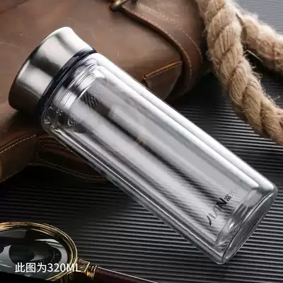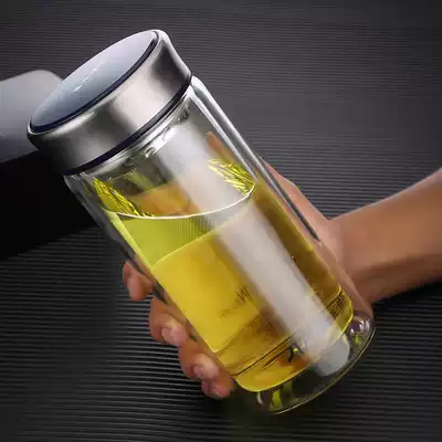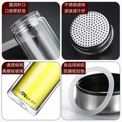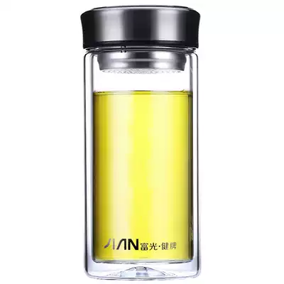 Fu Guangguang capacity double-layer glass leak-proof tea cup Transparent filter with lid heat-resistant men's and women's office water cup