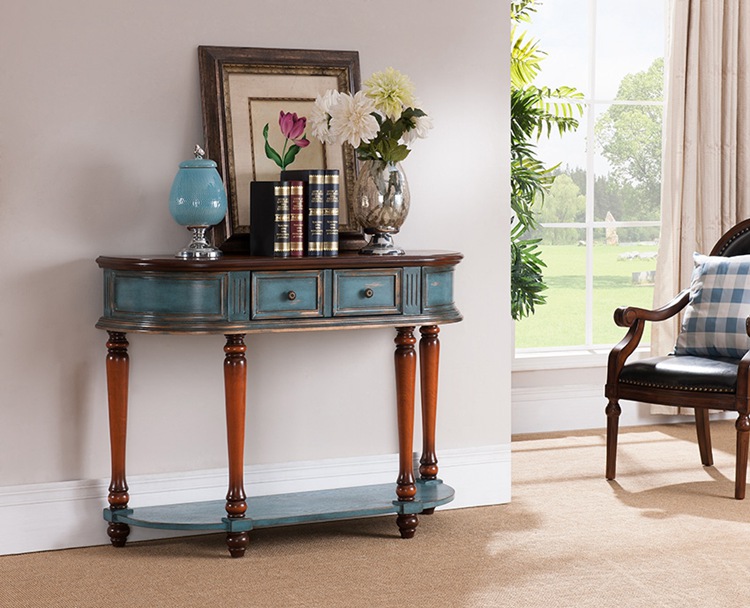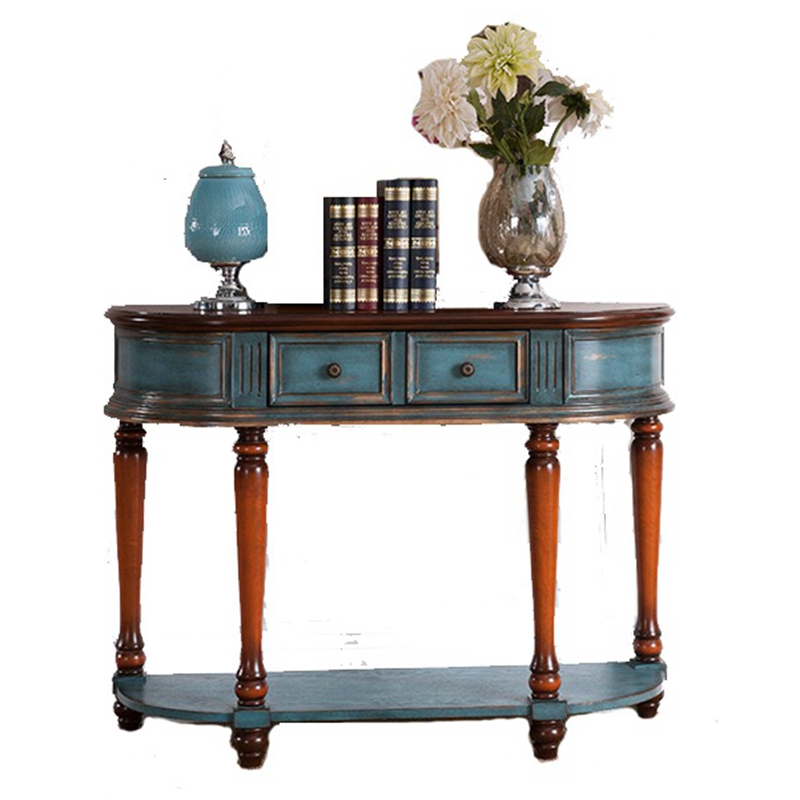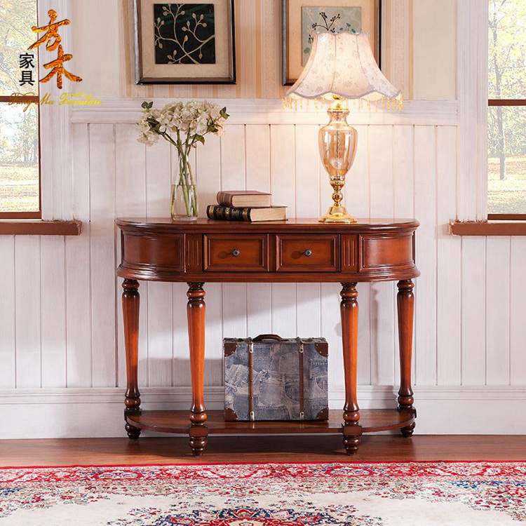 Entrance table semi-round table room table table European-style American-style rustic Mediterranean Chinese-style antique old solid wood