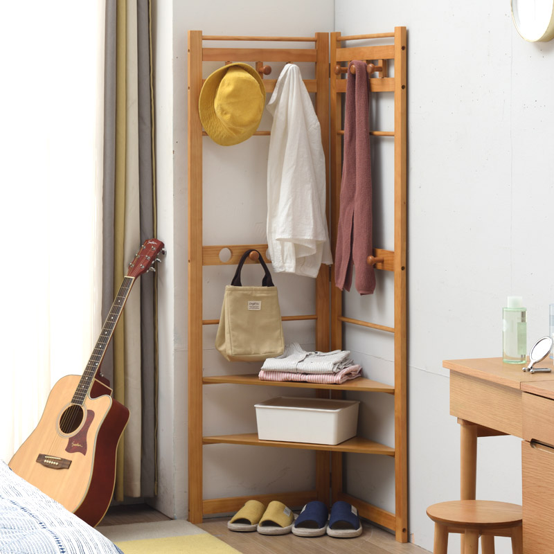Solid wood cloak rack vertical corner hanger floor-to-ceiling corner hanger bedroom corner against the wall hanging wall frame