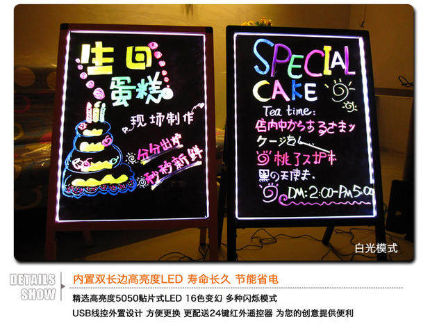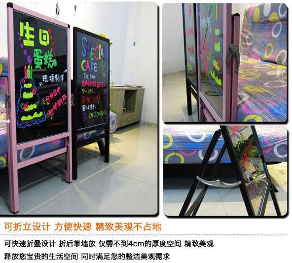 Plug-in light-emitting LED vertical handwriting fluorescent board Mirror bracket integrated small blackboard Pink and black optional