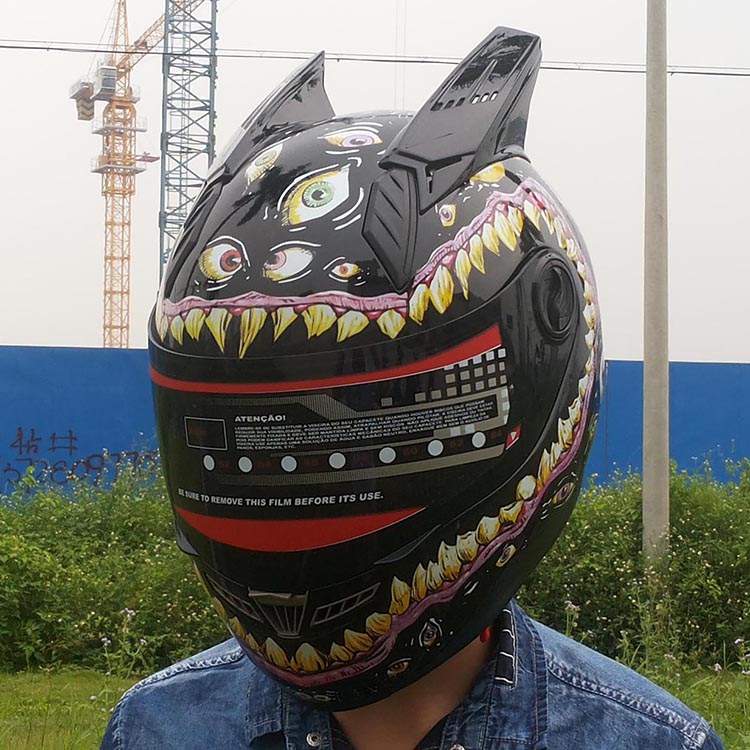 Motorcycle helmet full helmet running helmet male and female knight racing pink four seasons anti-fog personality with horns