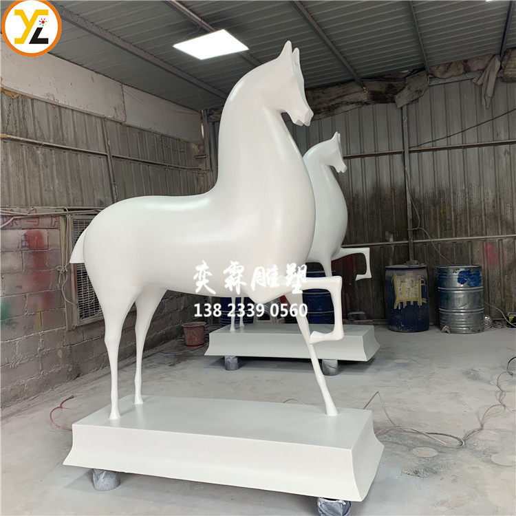 Art Landscape Horse Sculpture Hotel Hall Decoration Abstract white Horse Merchants Furnishing Glass Fiber Animal Pendulum