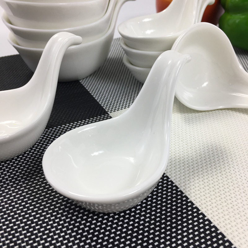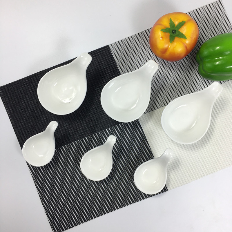 Pure White Ceramic Creative Salad Bowl Dish West Style Sauce Bowl Water Drop Flush Hotel Western Meal Seasoning Dish Caviar Spoon